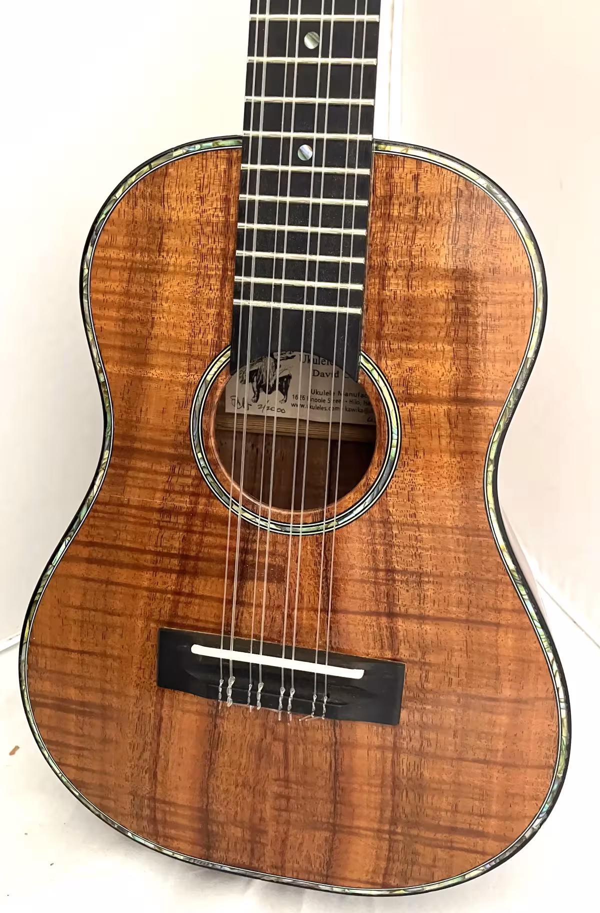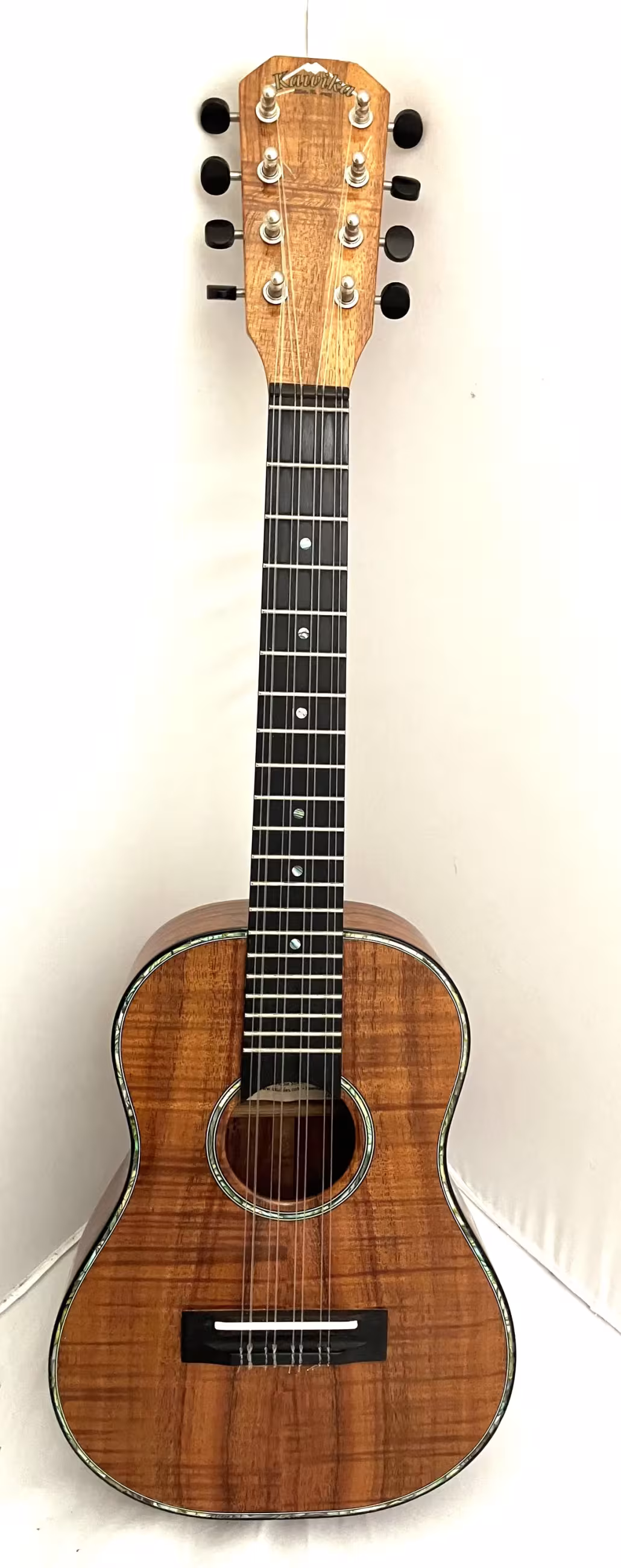 Here's a very hard to come by 8-string Kawika ukulele, made with beautiful Koa, in excellent-plus all around condition.